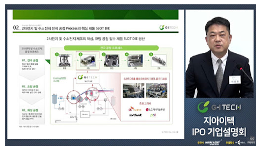2차 전지 전극용 핵심 제품 제조기업 지아이텍이 이달 말 코스닥 시장에 입성 예정이다. 이인영 지아이텍 대표이사는 IPO 온라인 기자간담회에서 Growth&Innovation with Technology라는 지아이텍의 사명처럼 기술로 성장한 회사이며 이번 상장을 통해 투자 기반을 강화하고 글로벌 고객사에게 인정받은 독보적 원천 기술을 바탕으로 글로벌 컨버팅 머시너리 토털 솔루션 기업으로 거듭나겠다는 메시지를 던졌다.